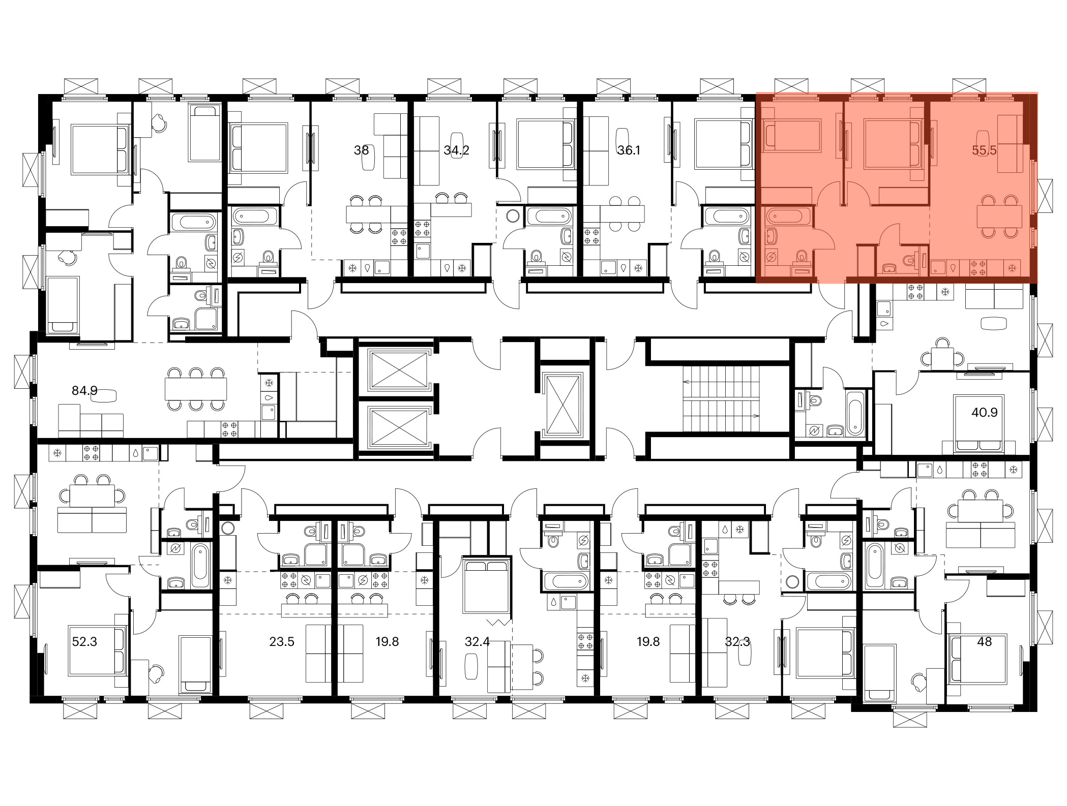 В квартирах продуман каждый метр — мы детально просчитываем все возможные сценарии и способы использовать пространство. Например, большой семье подойдёт квартира с кухней-гостиной, выделенной постирочной и спальнями, разнесёнными по разные стороны гостиной. А кому-то важнее просторная мастер-спальня с гардеробной и собственным санузлом.