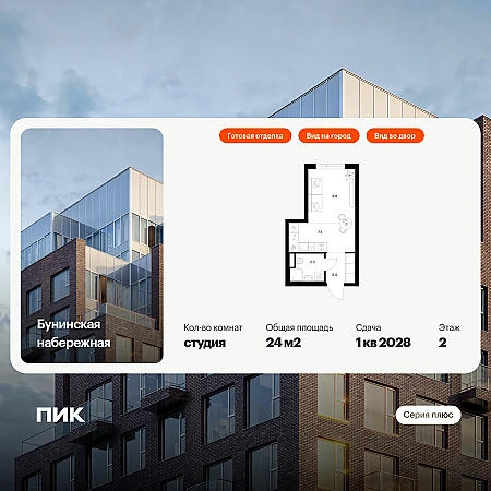 Купить квартиру студию 24 м² в ЖК Бунинская набережная