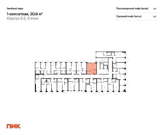 Продаётся 1-комн.квартира площадью 30.60 кв.м на 3 этаже 13 этажного дома (Корпус 5.3, секция 3) проекта ПИК Зелёный парк. Светлый просторный подъезд на уровне земли, функциональная планировка, большие окна, с отделкой.