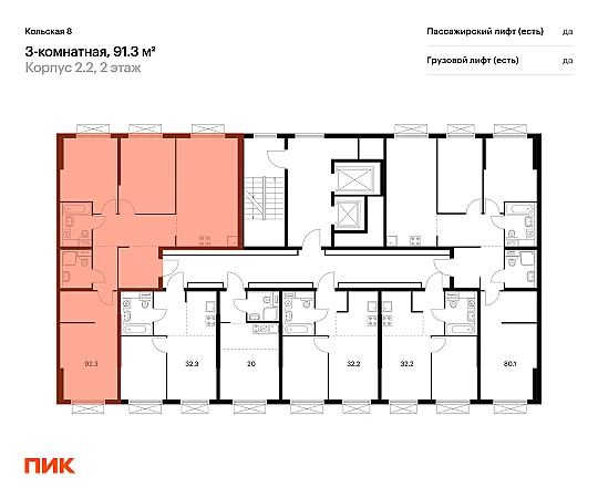 Продаётся 3-комн.квартира площадью 91.30 кв.м на 2 этаже 15 этажного дома (Корпус 2.2, секция 6) проекта ПИК Кольская 8. Светлый просторный подъезд на уровне земли, функциональная планировка, большие окна, с отделкой.
