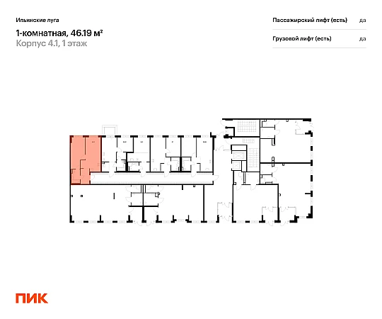 Продаётся 1-комн.квартира площадью 46.19 кв.м на 1 этаже 9 этажного дома (Корпус 4.1, секция 4) проекта ПИК Ильинские луга. Светлый просторный подъезд на уровне земли, функциональная планировка, большие окна, с отделкой.