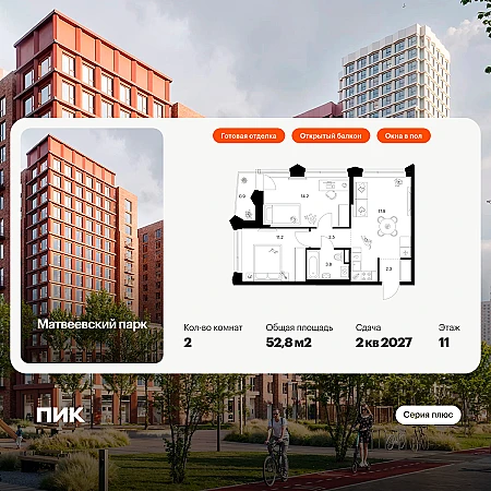 Купить 2к квартиру 62 м² в ЖК Мичуринский парк