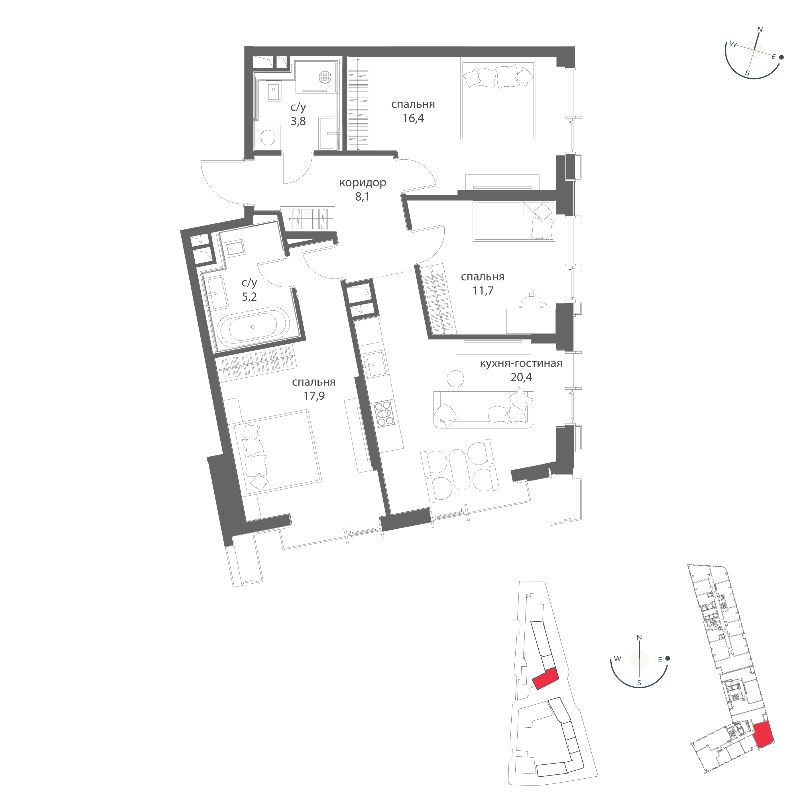 Стоимость квартиры со скидкой 8% при 100% оплате 43640200 руб.