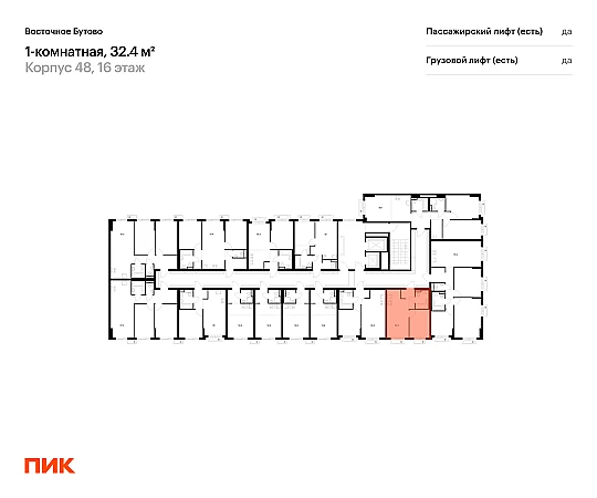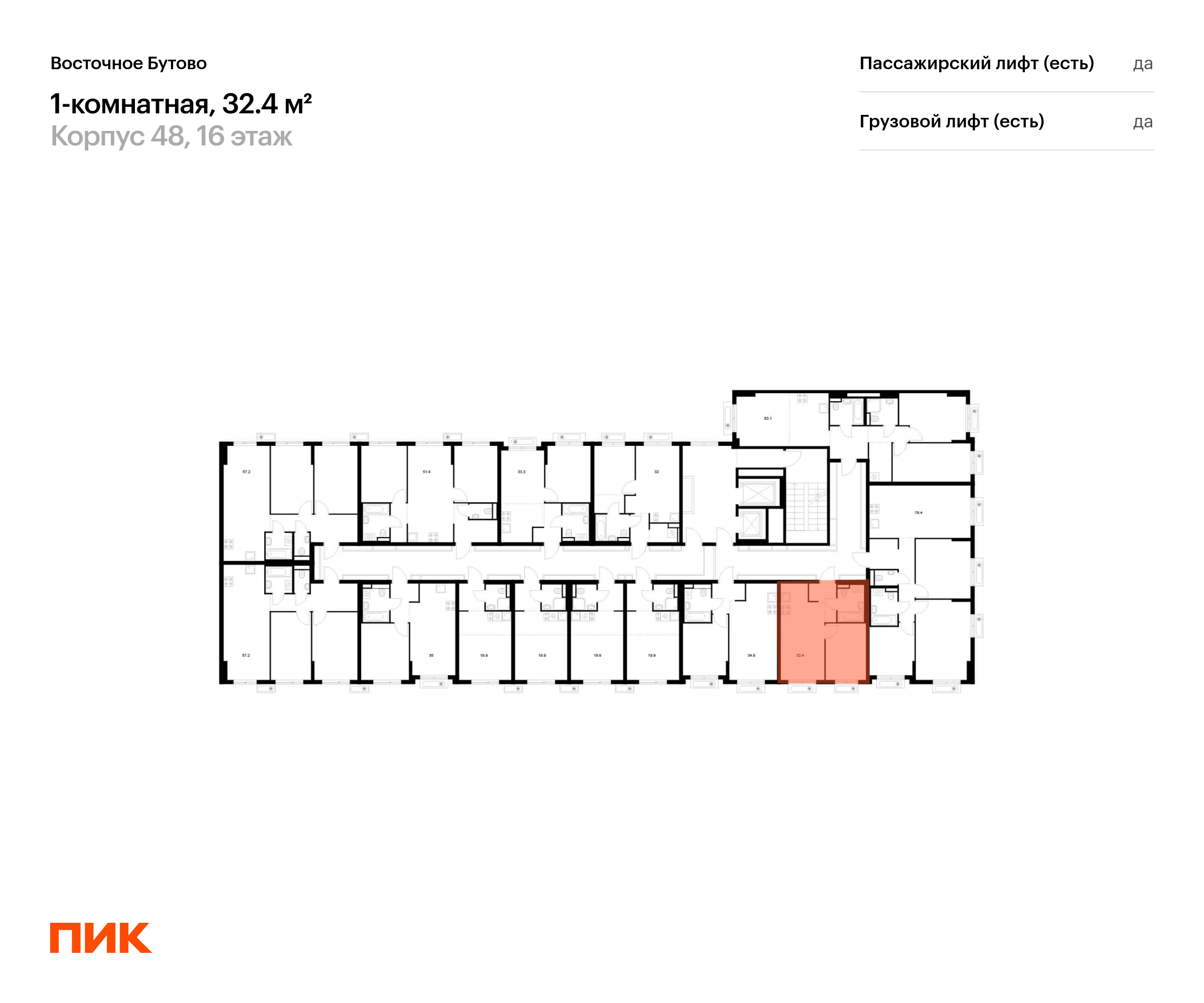 Продаётся 1-комн.квартира площадью 32.40 кв.м на 16 этаже 17 этажного дома (Корпус 48, секция 2) проекта ПИК Восточное Бутово. Светлый просторный подъезд на уровне земли, функциональная планировка, большие окна, с отделкой.
