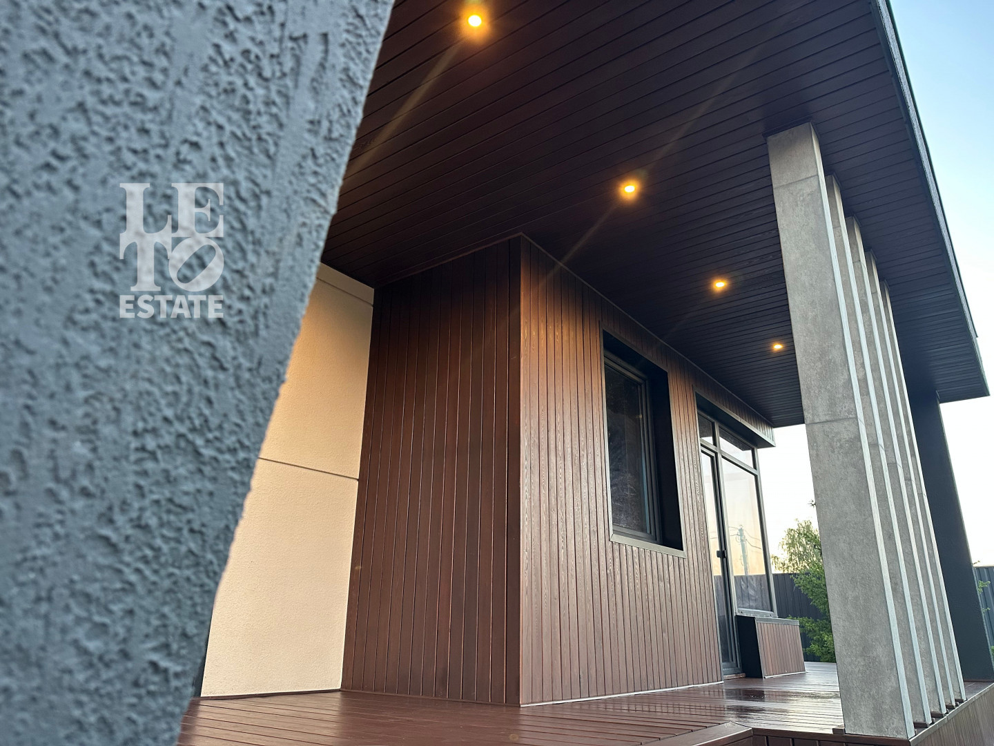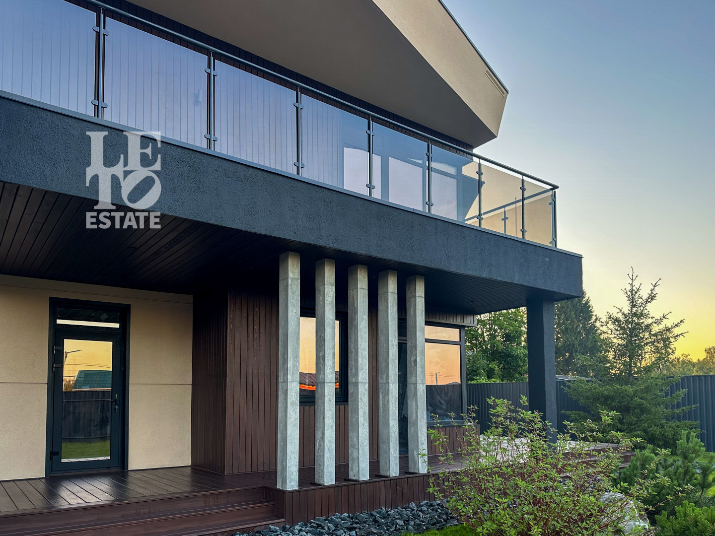 В отделки фасада использованы такие материалы как жидкий камень, декоративная штукатурка, лиственница.