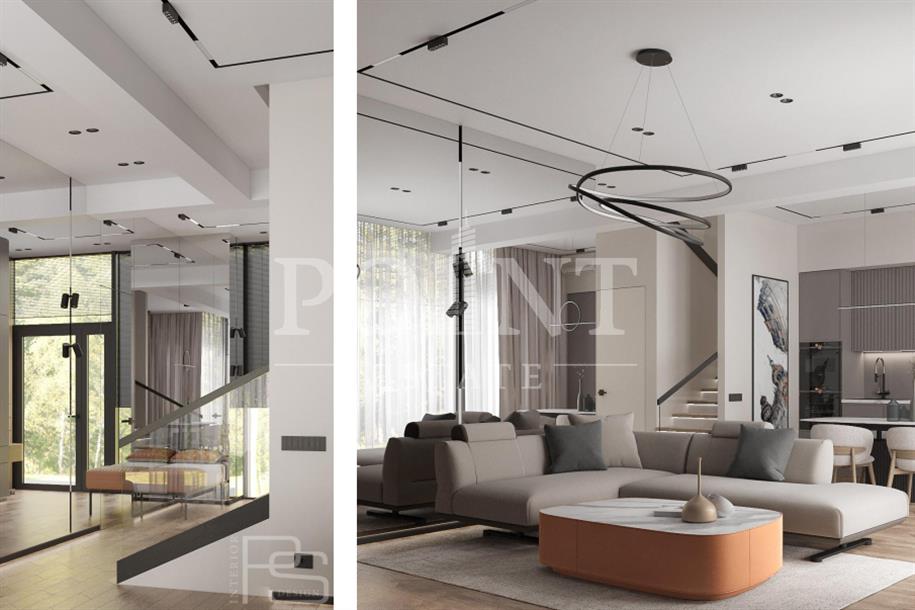 Просторный, светлый и уютный дом в два этажа, где первый этаж является местом для совместного времяпрепровождения семьи, а на втором этаже расположены приватные зоны отдыха.