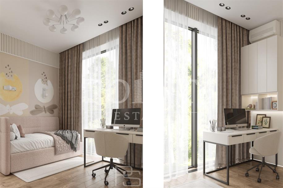Второй этаж: три спальни с санзулами и большой гардеробной комнатой.