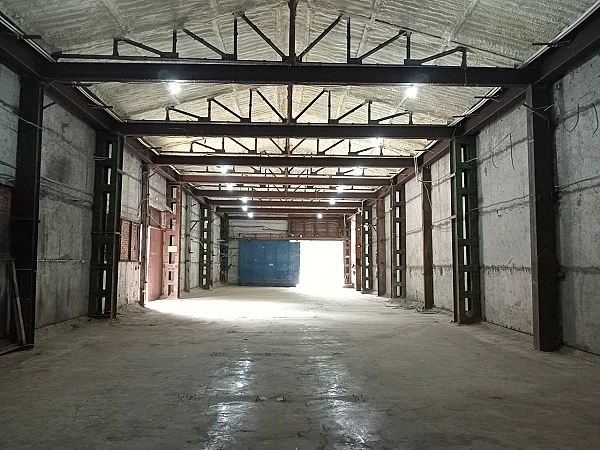 Высота потолка 6 м. Пол - бетон. Вотота с двух сторон 4м./4м. К зданию подведено отопление, водоподведение и канализация, Электрическая мощность 15кВт.(есть возможность увеличить)