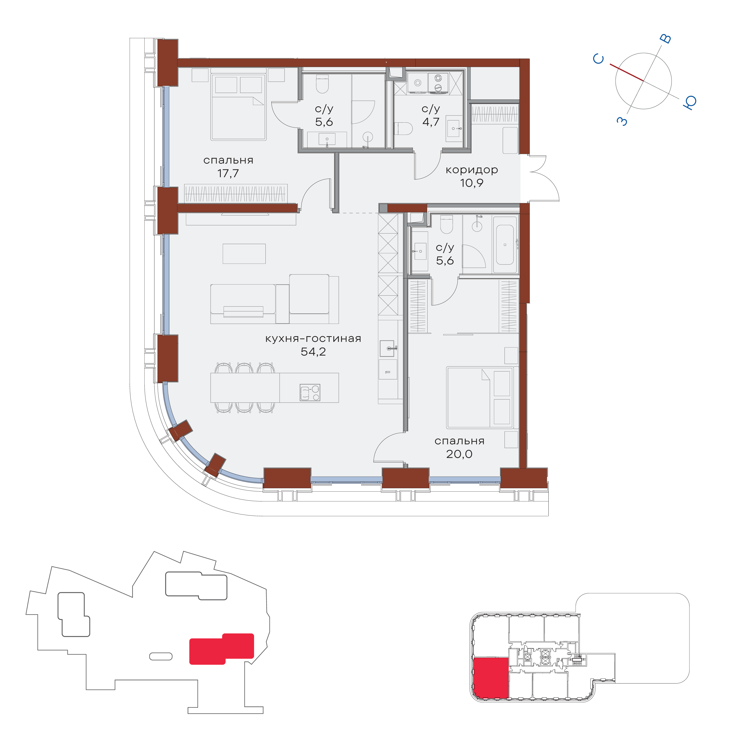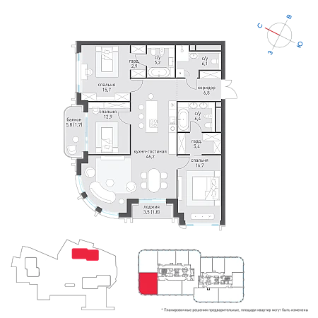 Купить 3к квартиру 127 м² в ЖК Татарская 35