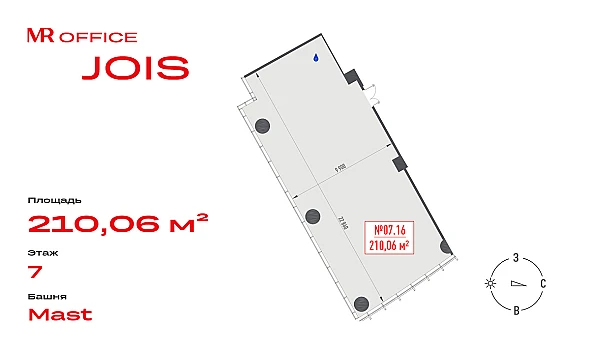 • Высота потолков от 4,05 до 6,03 м — создаёт ощущение простора, идеально для открытых пространств, шоурумов и двухуровневых решений.
