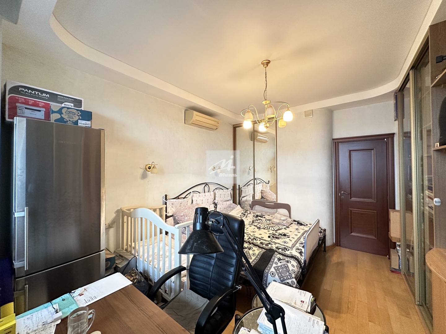 В квартире имеется 3 кондиционера (в каждой комнате), в санузлах и кухне установлен теплый пол, в коридоре установлен датчик движения (свет включается и выключается при движении), на полу лежит дубовый паркет.