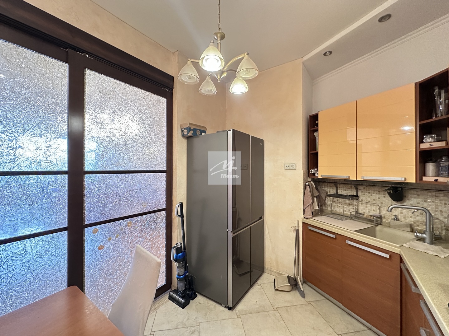 Отличное состояние и удобная планировка для семьи: большая гостиная, кухня, две больших спальни, два совмещенных санузла, застекленный балкон, что составляет 100 кв.м. Пространство использовано органично, нет ничего лишнего, все функционально, что создает ощущение простора.