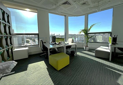 Планировка - кабинетная. Приточно-вытяжная вентиляция. Центральное кондиционирование. Пожарная сигнализация. Интернет, телефония. Охрана. Видеонаблюдение. Система контроля доступа. Лифты: 8, Schindler. Подземная парковка.