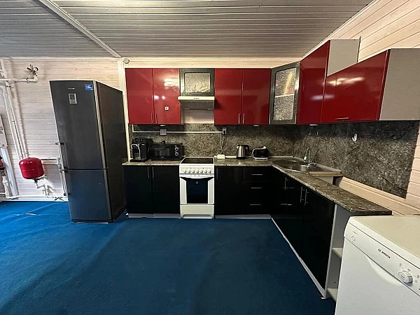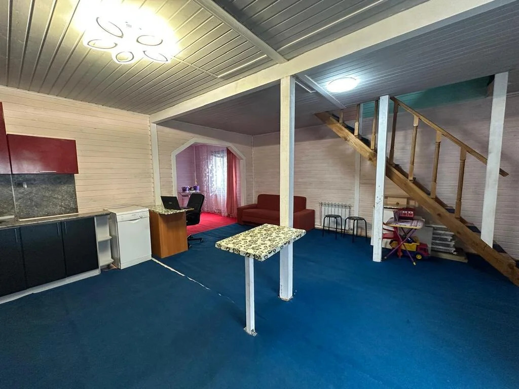 Дом 99 кв.м каркасно-щитовой, фундамент сваи, дом утеплен, крыша металлочерепица. В доме: просторная кухня-гостиная, с/у совмещенный, холл и веранда, на втором этаже 2 просторныекомнаты (18 кв.м и 32 кв.м).