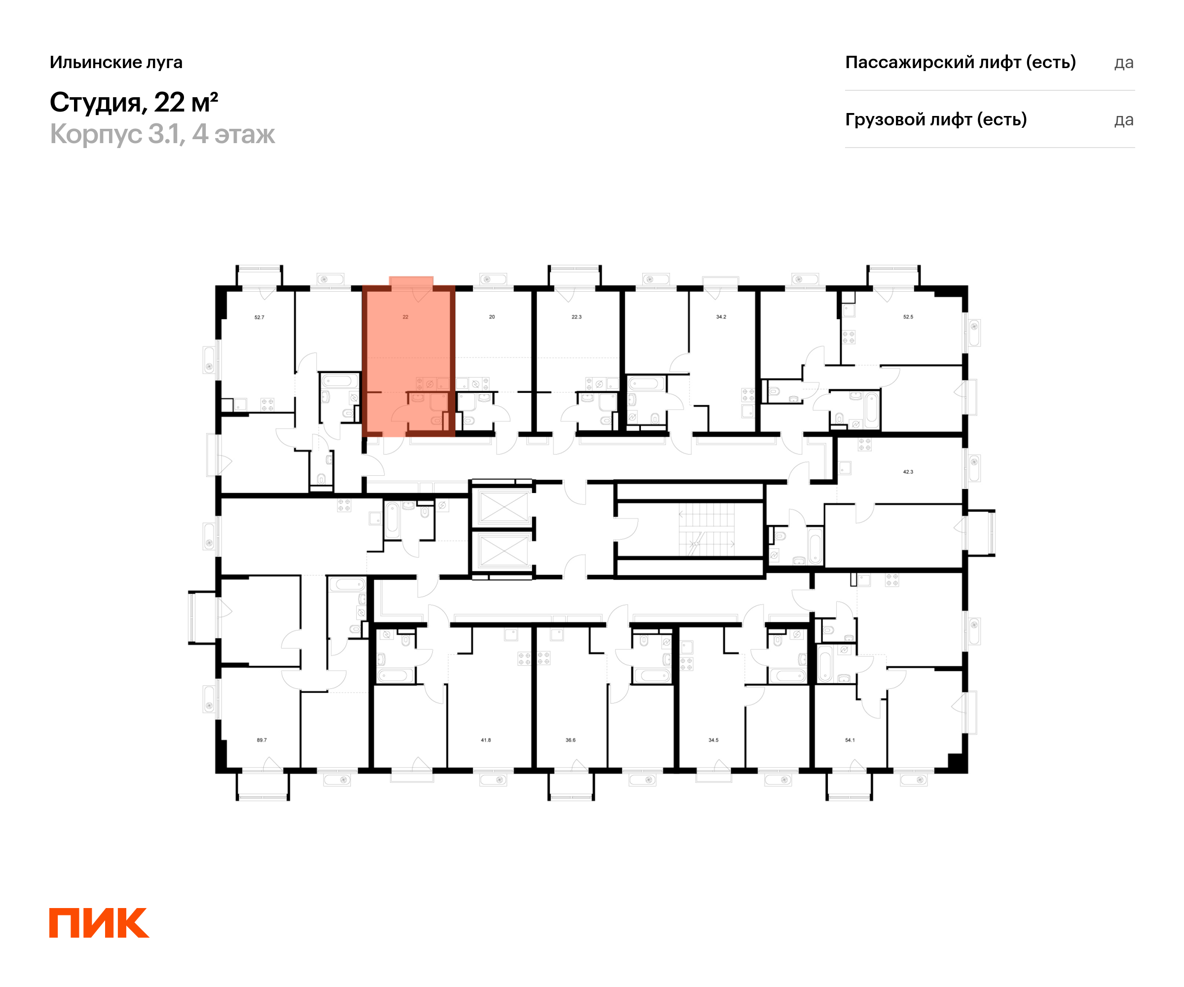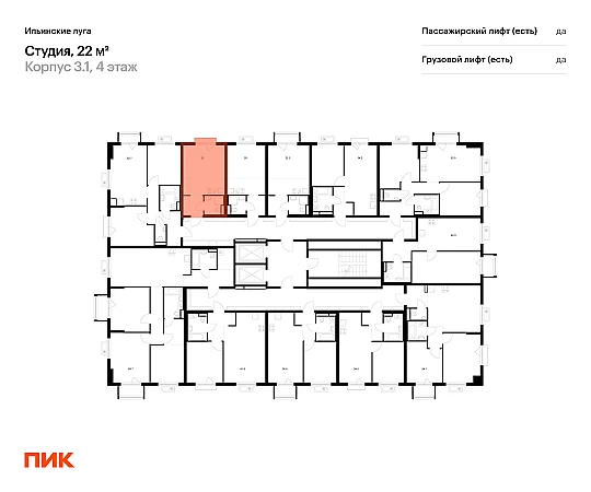 Продаётся квартира-студия площадью 22.00 кв.м на 4 этаже 9 этажного дома (Корпус 3.1, секция 1) проекта ПИК Ильинские луга. Светлый просторный подъезд на уровне земли, функциональная планировка, большие окна, с отделкой.