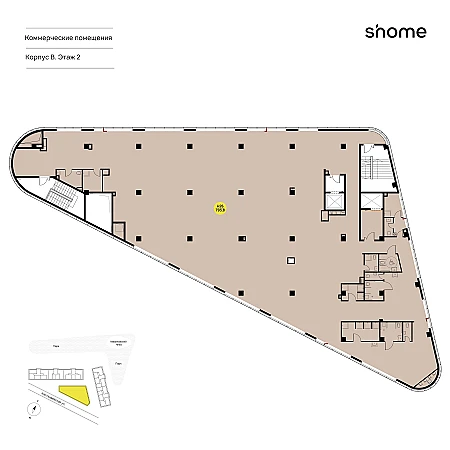 Shome расположен на 1-й линии ул.Кастанаевская с удобным выездом на Кутузовский пр-т и Рублевское ш., что обеспечит коммерческие помещения дополнительным трафиком резидентов района и нерезидентов.