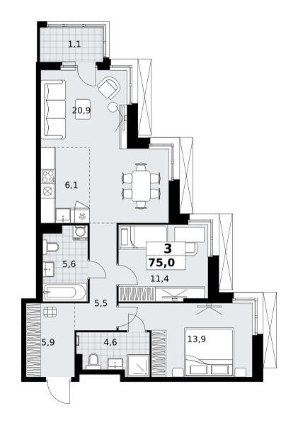- с остекленными лоджиями и панорамными видами на лес.