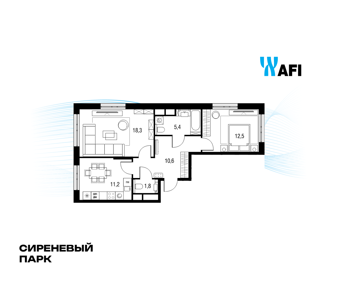 Купить 2к квартиру 59 м² в ЖК Сиреневый парк