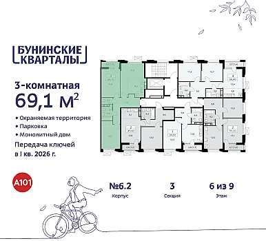 Строим кварталы для жизни с заботой о будущем. Предлагается 3-комнатная квартира комфорт-класса 77,1 кв.м в корпусе 4.2 на 7 этаже, в ЖК «Мытищи Парк»