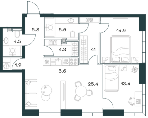 Купить 3к квартиру 88 м² в квартале SHIFT