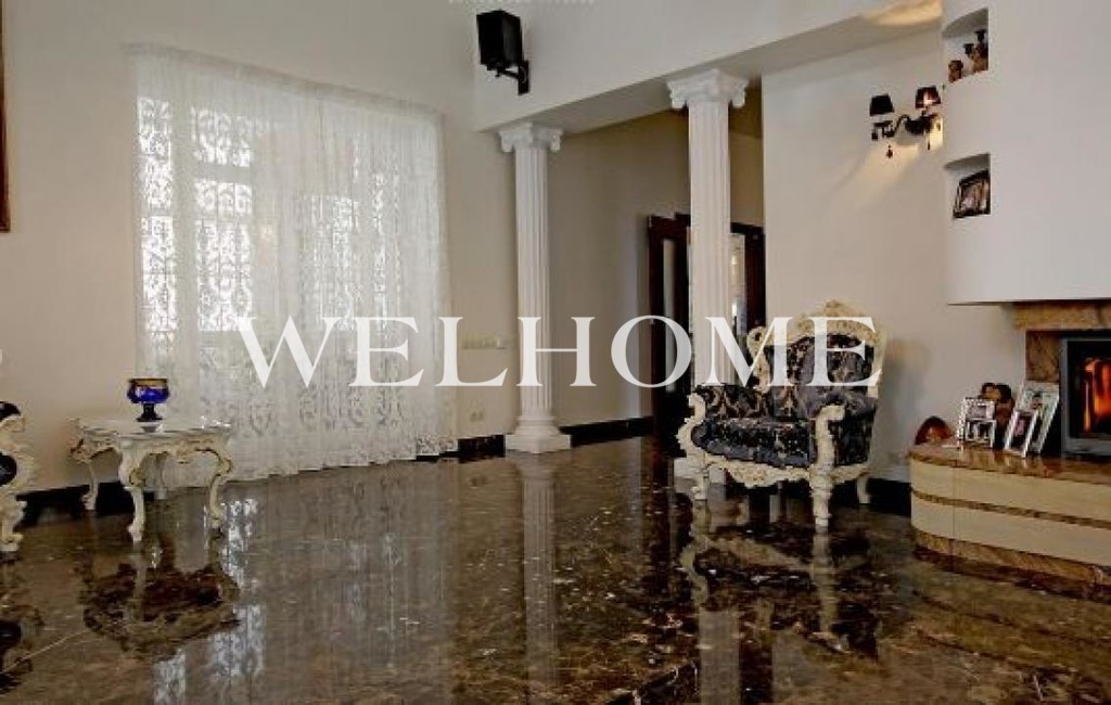 ID объекта: Z-13000. Предлагается дом под ключ на участке в охраняемом поселке. Коттедж полностью меблирован и оснащен электро-бытовой техникой. Интерьеры дома в классическом стиле. Высокие, более 5 метров, потолки каминного зала создают атмосферу неповторимого ощущения комфорта и уюта. На земельном участке выполнены высококлассные ландшафтные работы, проложены прогулочные дорожки, сделано уличное освещение. Построен гостевой дом с бассейном, сауной и апартаментами для обслуживающего персонала.Поэтажное описание: цокольный этаж: помещение СПА, сауна, спортивный и бильярдный залы, две ванные комнаты, комната для обслуживающего персонала, помещения технического и бытового назначения;1 этаж: каминный зал, столовая, кухня, холл, спальная комната, гардеробная комната, ванная комната, зимний сад, крытые террасы, веранды, гараж на два автомобиля;2 этаж: спальная комната владельцев с ванной и гардеробной комнатами и балконом, холл-библиотека, две спальные комнаты, две ванные комнаты, две гардеробные комнаты, балкон;Мансардный этаж: студия площадью более 70 кв.м.