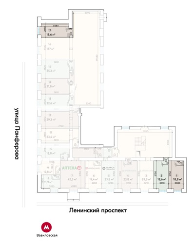 Расположение: первая линия, 100 м от м. «Университет», первый дом от будущей ст. «Вавиловская» (открытие — 2025 г.).