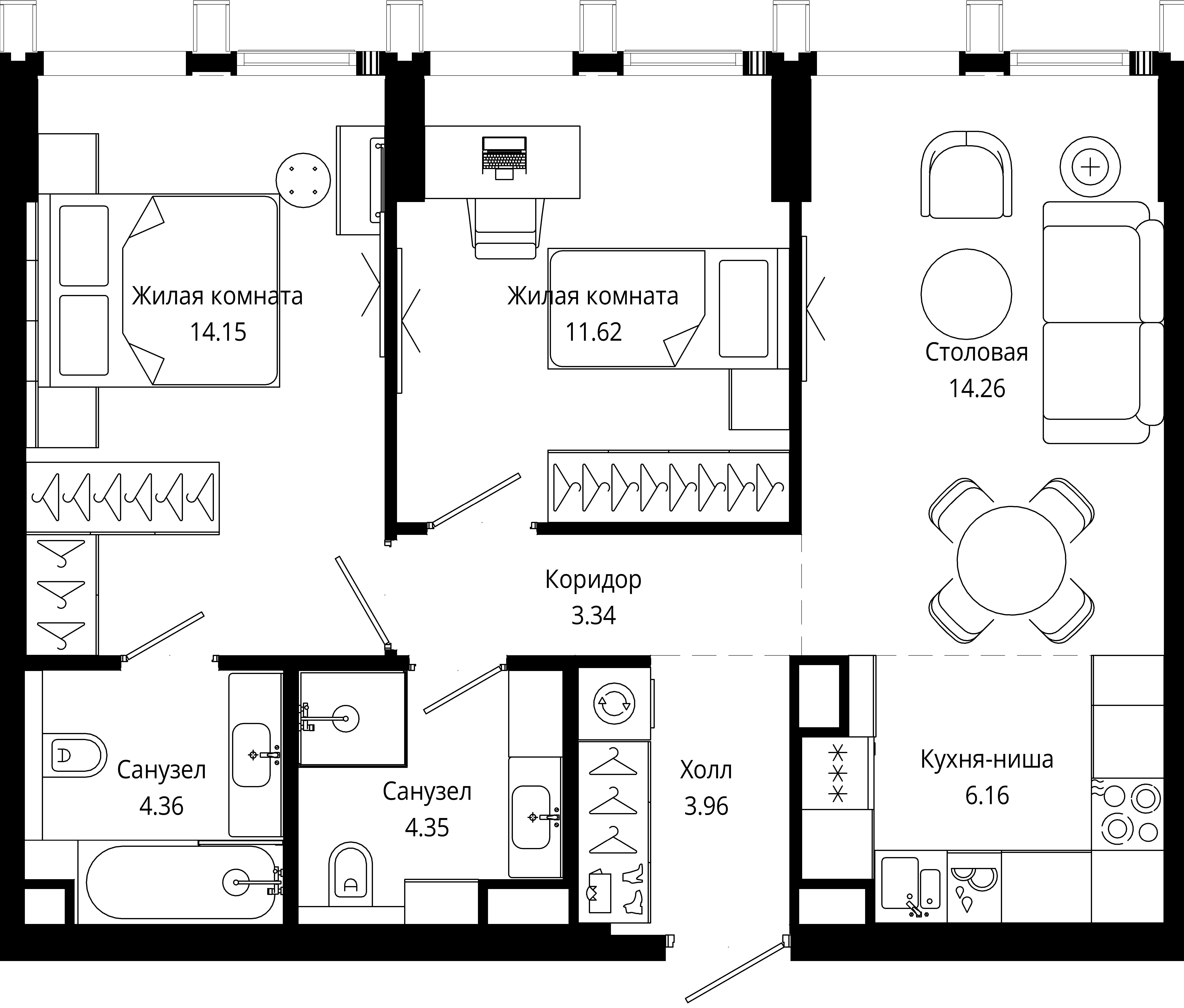 Купить 2к квартиру 62 м² в ЖК MOD (Мод)