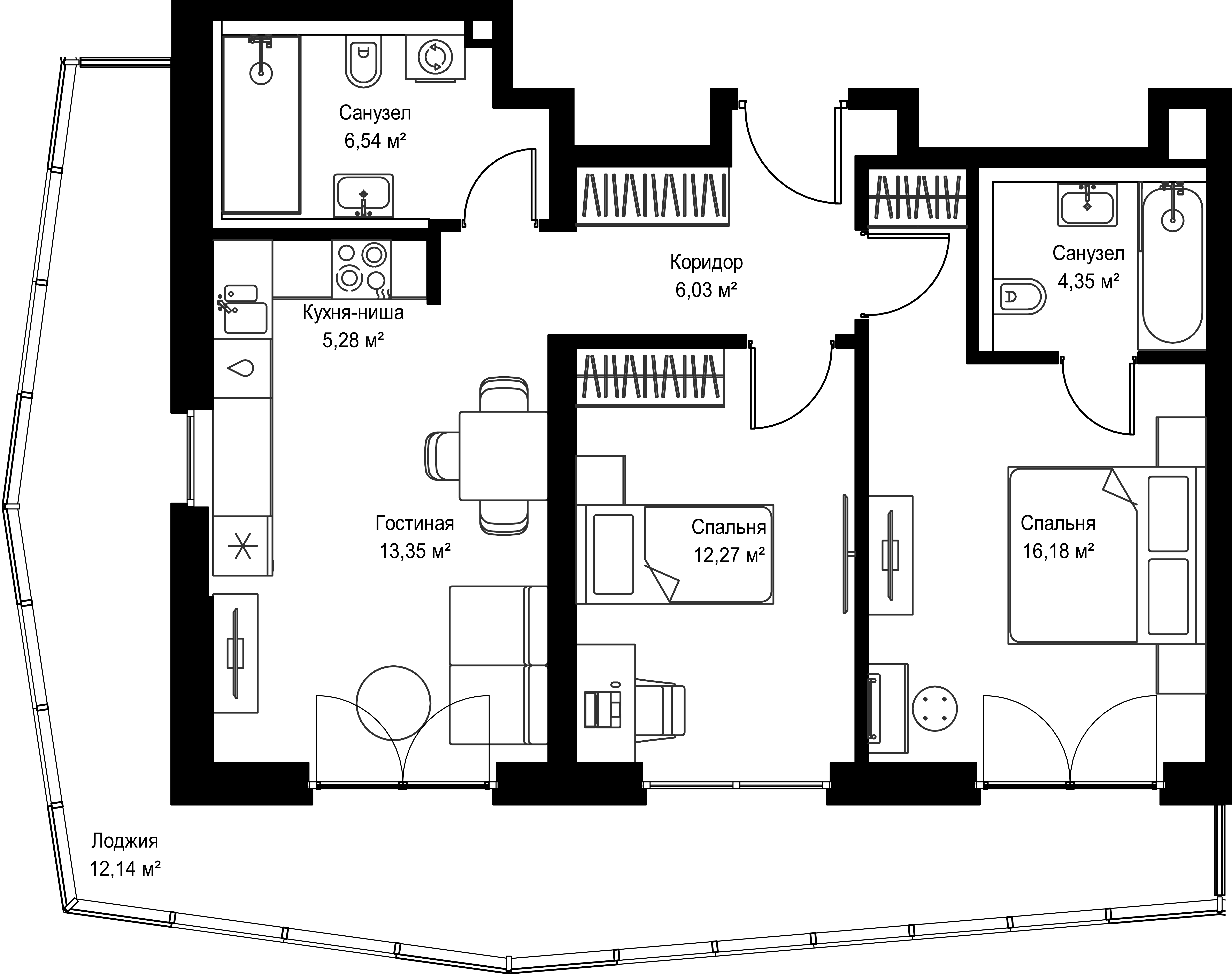 Купить 2к квартиру 76 м² в ЖК Селигер Сити