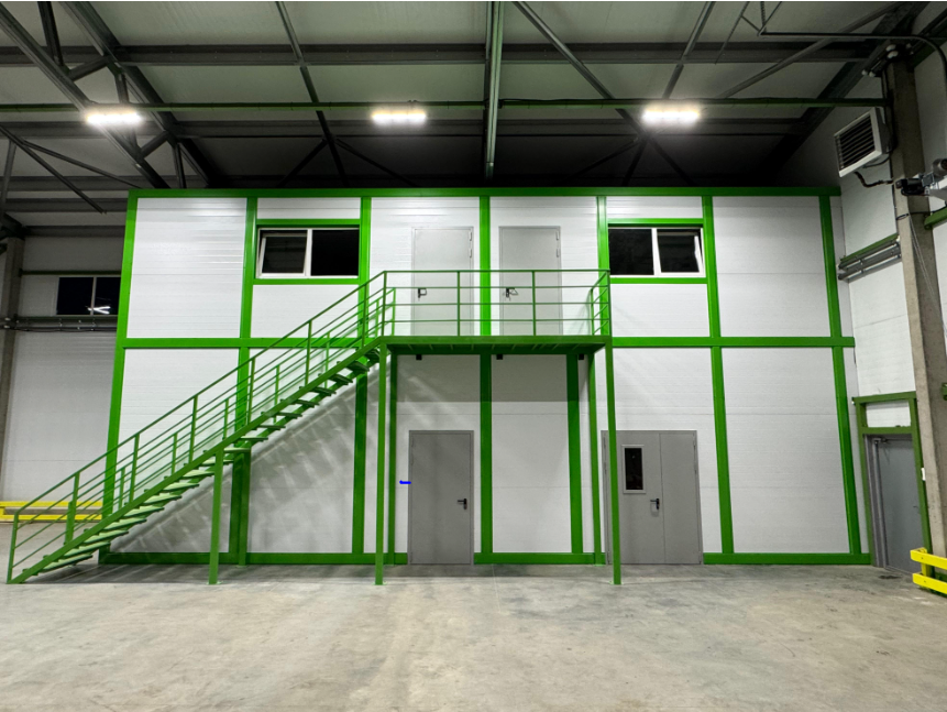 Встроенное АБК с офисами, санузлами, душевой и кухней.