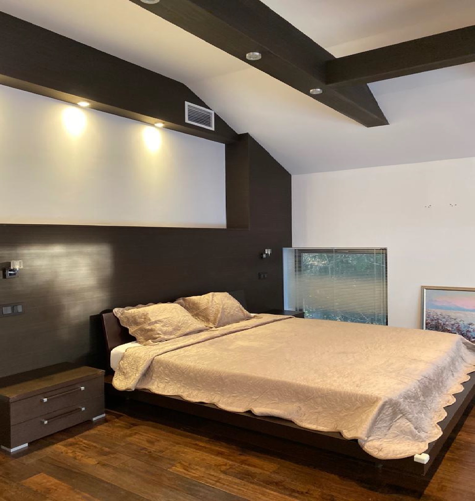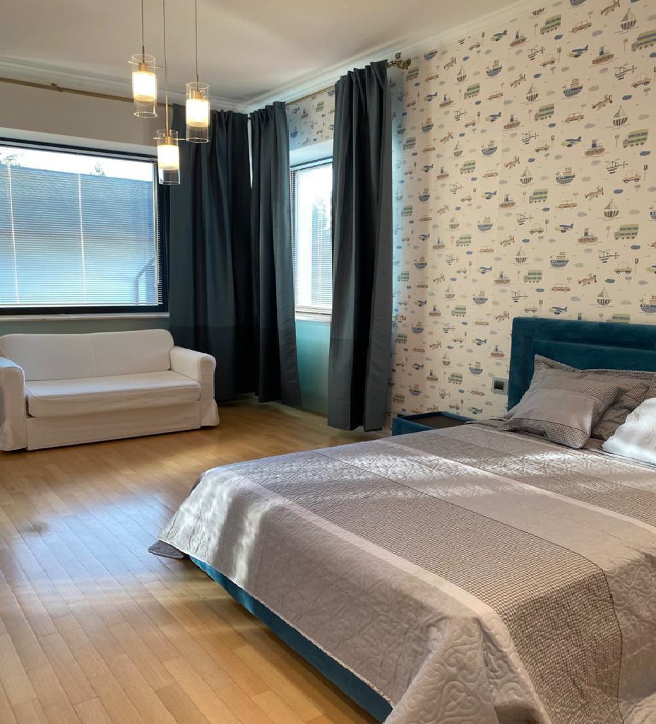 Предлагается к продаже просторный коттедж с панорамным остеклением, расположенный в КП Бенилюкс, Новая Рига. Отделка фасада выполнена из натурального камня. Функциональная планировка 5 спальных комнат со своими санузлами и гардеробными, просторная гостиная 50 м2 с камином и с красивым видом на парк и лес. 1 этаж холл, кухня, столовая, гостиная с камином, су, игровая комната, тренажерный зал; сауна с бочкой; 2 этаж хозяйская спальня с ванной комнатой и гардеробной, 2 детские спальни со своими ванными и гардеробными комнатами, гостевая комната со своей гостиной, гардеробной, и ванной комнатой. Гараждом для персонала 164 м2 кухня-гостиная, спальня, ванная; котельная, гараж 4 ам. Подвал с системой хранения. Отдельное строение- крытая теплая беседка с камином-барбекю. Великолепный участок с ландшафтным дизайном.