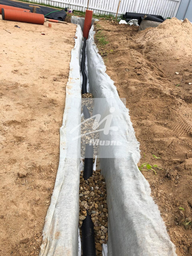 Ливневка уходит в поселковую канализацию (участок/дом подключен к общей канализации).По мимо общей канализации, построено 2 резервных переливных колодца, выведены доп. закладные под сети - электрика, вода, канализация.