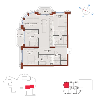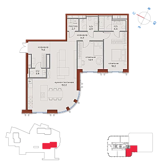 В квартире выполнена чистовая дизайнерская отделка. Резиденция наполнена светом и воздухом, благодаря панорамному остеклению и высоким потолкам.
