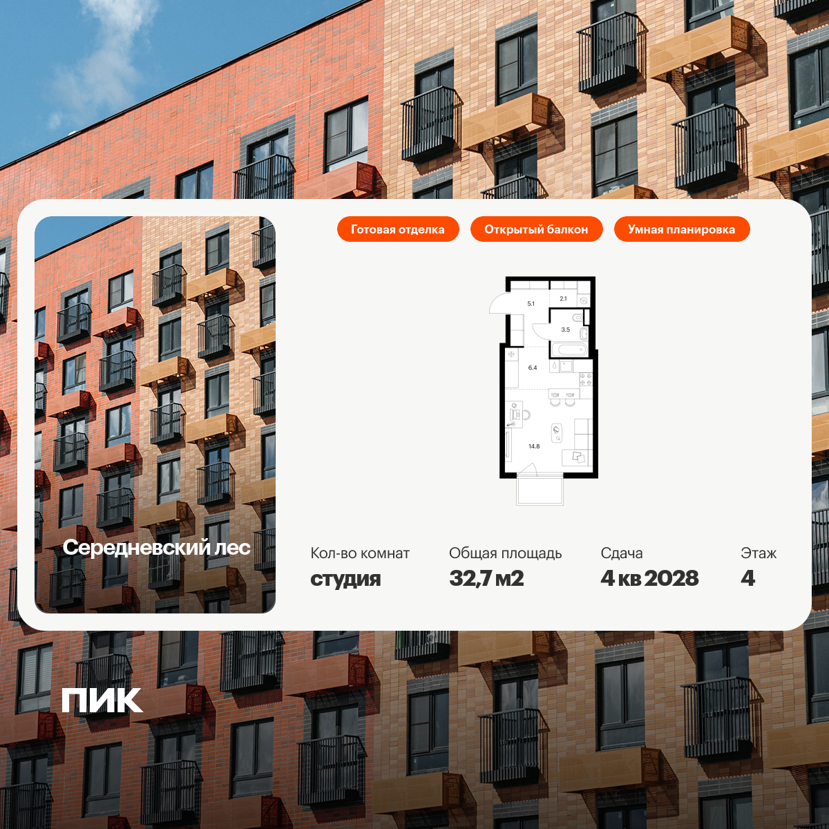 Продаётся квартира-студия площадью 23.15 кв.м на 2 этаже 9 этажного дома (Корпус 4.1, секция 1) проекта ПИК Ильинские луга. Светлый просторный подъезд на уровне земли, функциональная планировка, большие окна, с отделкой.