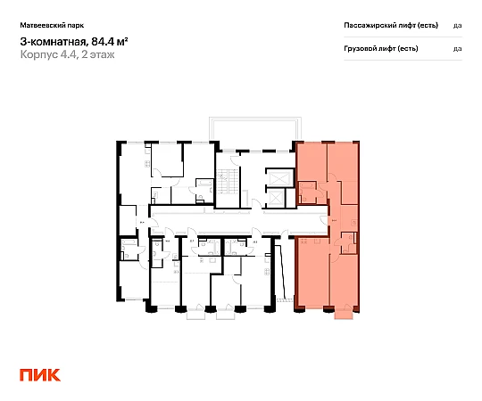 Продаётся 3-комн.квартира площадью 84.40 кв.м на 2 этаже 13 этажного дома (Корпус 4.4, секция 2) проекта ПИК Матвеевский парк. Светлый просторный подъезд на уровне земли, функциональная планировка, большие окна, с отделкой.