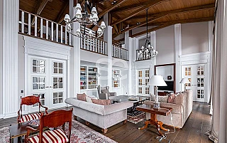 1 этаж: кухня, столовая, гостиная со 2-м светом, 2 с/у, вторая кухня, 3 гардеробные, 2 спальни с с/у.