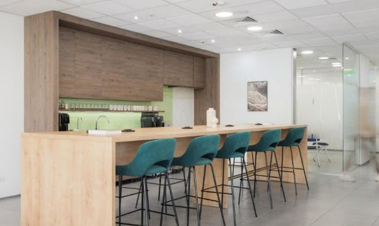 В местах общего пользования есть зона ресепшн и отдыха, оборудованная кухня, санузлы, переговорные комнаты.