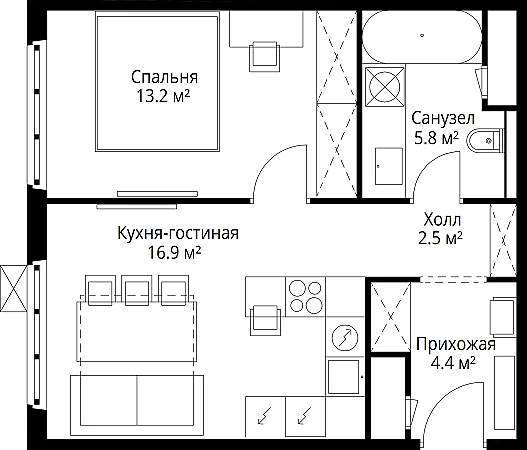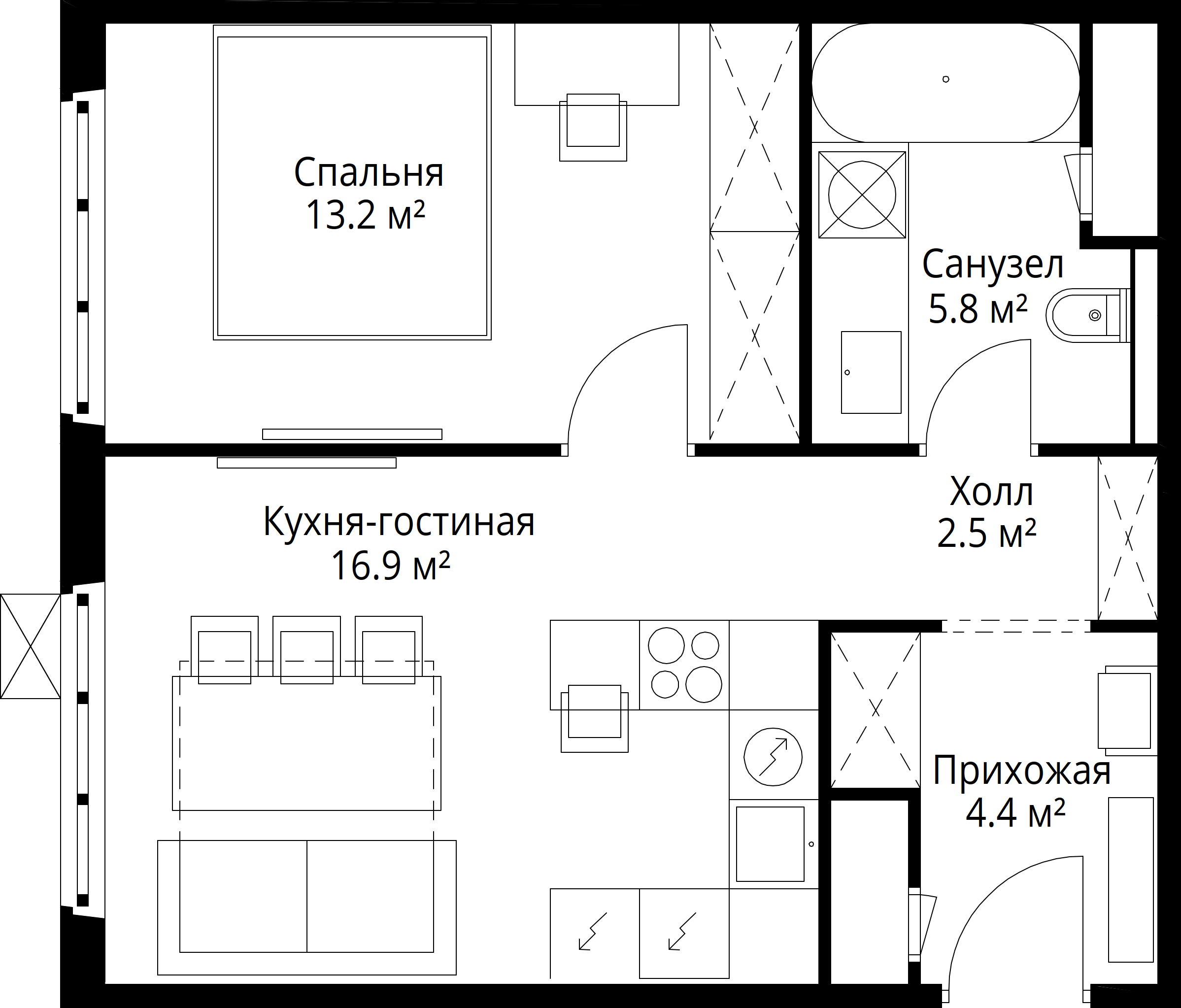 Купить 1к квартиру 42 м² в ЖК У реки. Эко Видное 2.0