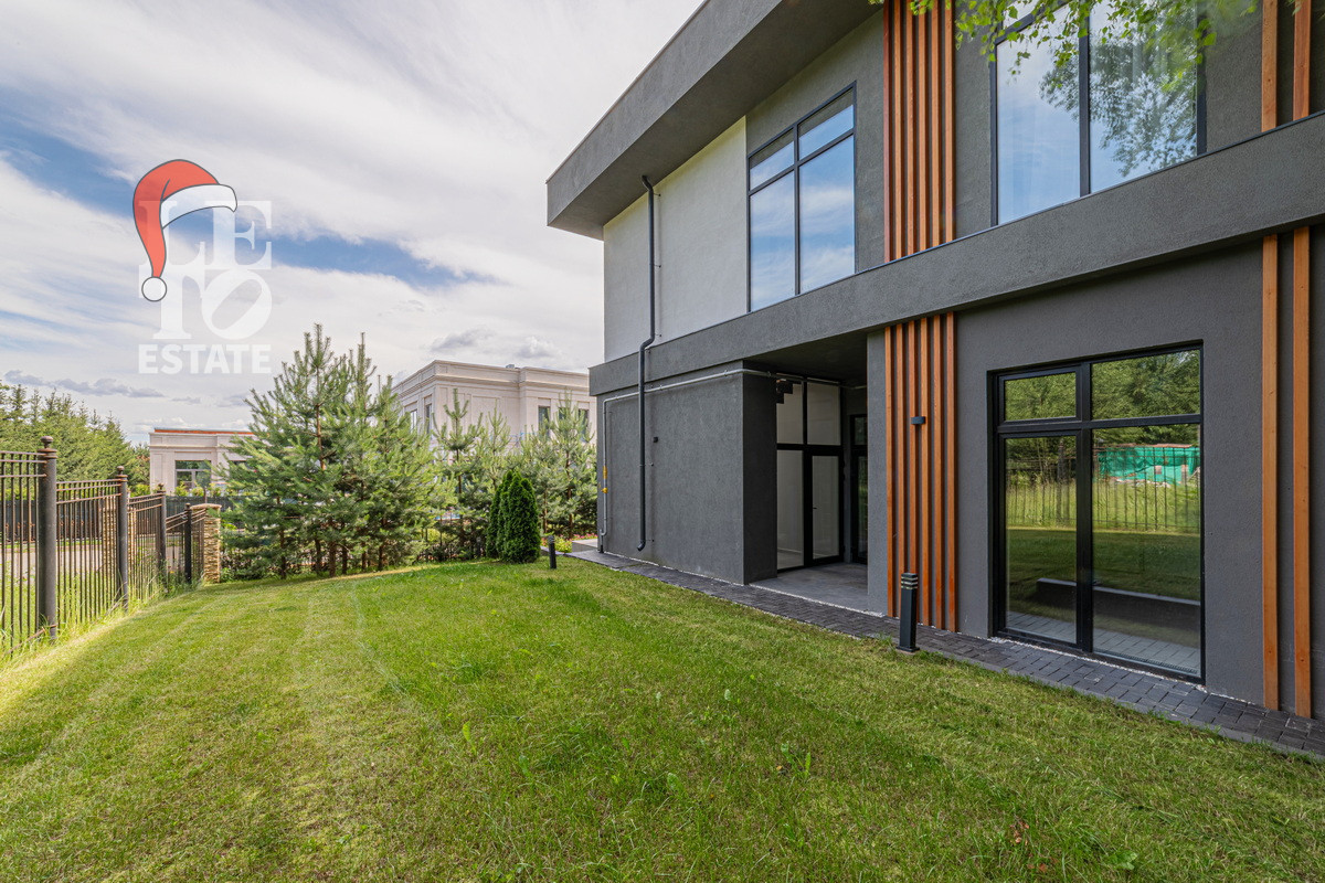 Новый дом расположен в тихой части поселка. Своим стилем он идеально вписывается в лесное окружение. Этот особняк подойдет тем, кто любит природу, но при этом хочет, чтобы рядом была вся инфраструктура. В доме есть вся необходимая мебель и техника для постоянного проживания. Двухэтажный дом с 4 спальнями и 3 ванными комнатами. Большие панорамные окна в пол в каждой комнате и в ваннах комнатах. Здесь открывается потрясающий вид на лес, в котором много еловых — вечнозеленые деревья даже в самую долгую зиму будут радовать вас и создавать особое настроение.