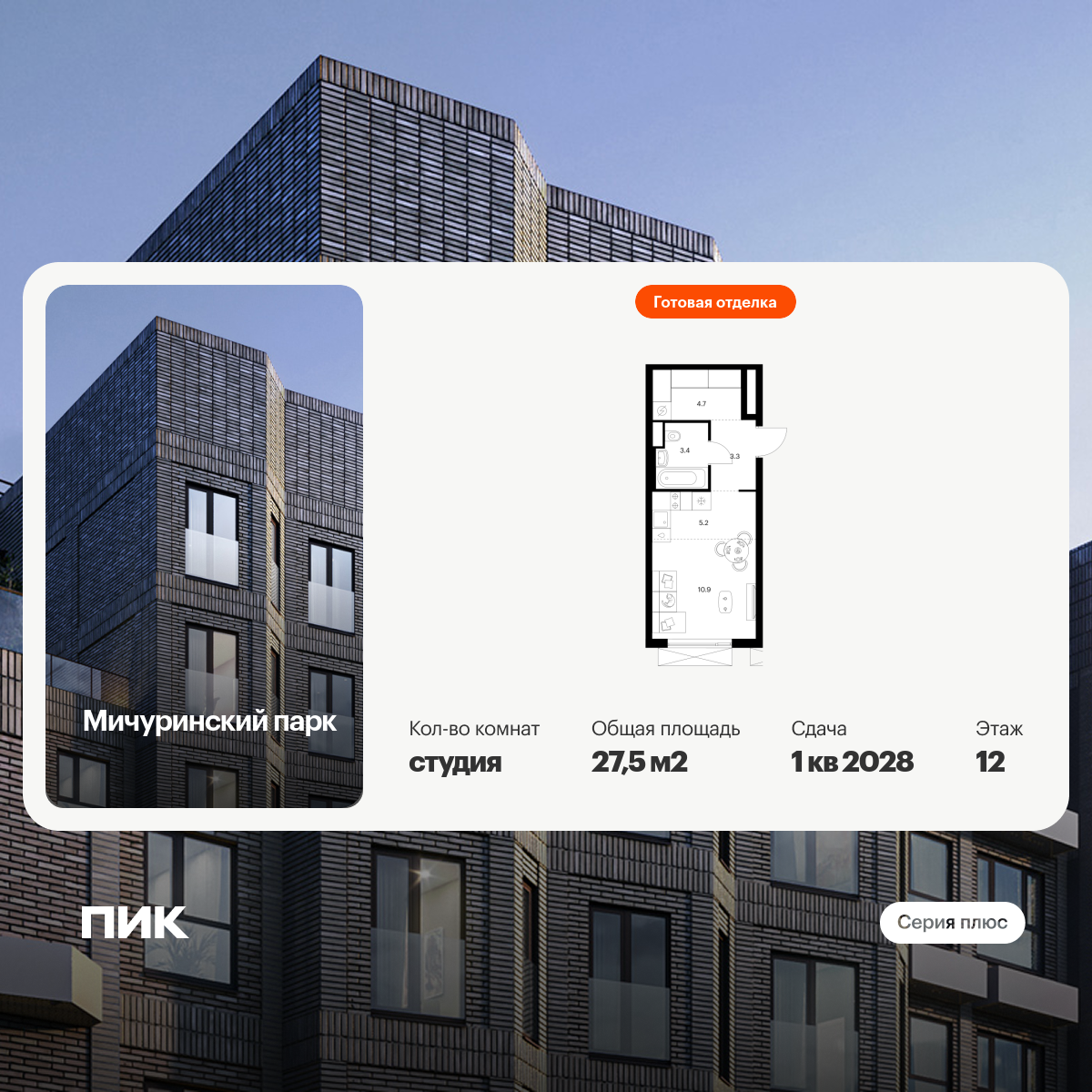 Купить 1к квартиру 33 м² в ЖК Матвеевский парк