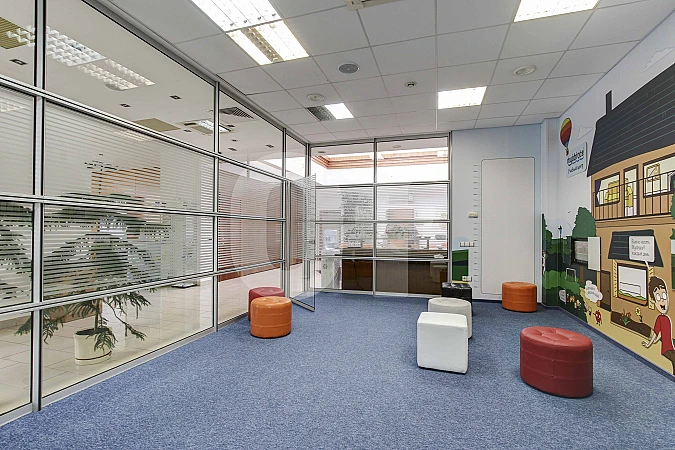 - Комната совещаний 46,7 (стена–трансформер позволяет объединить помещения до 100 м2).