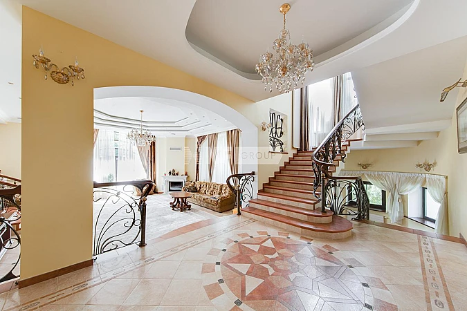 Дом укомплектован дорогой техникой от элитных производителей и мебелью по индивидуальному заказу, полностью готов к проживанию. Дом построен в классическом стиле, с цокольным этажом, мансардой, несколькими балконами, на одном из которых зона отдыха и барбекю. В доме обустроен банный комплекс с сауной, хамамом, джакузи и обширной комнатой отдыха со своей кухней, каминным залом и массажным кабинетом. Гараж на две больших машины, общей площадью 47,5 кв.м, высота потолка 3,12 м, также имеются помещения для персонала со своей кухней и санузлом. Дом оборудован системой умный дом с дистанционным управлением, укомплектован дорогой техникой от элитных производителей и мебелью по индивидуальному заказу. В отделке использованы экологически чистые, дорогостоящие материалы, лучших европейских производителей, большинство элементов дома сделаны по индивидуальному проекту и спец. заказам.