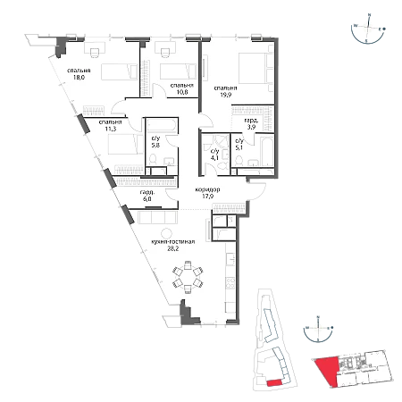 * **количество комнат:** три, что позволяет организовать пространство с учётом потребностей каждого члена семьи;