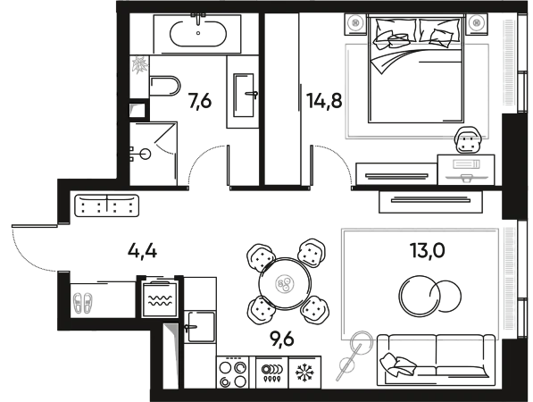 Главная Купить квартиру в Москве и МО 2к квартира 49 м² в ЖК Pride