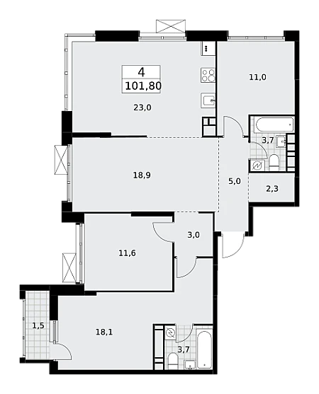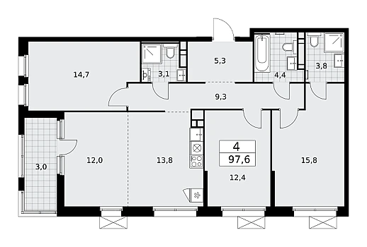Купить 4к квартиру 92 м² в ЖК Мираполис
