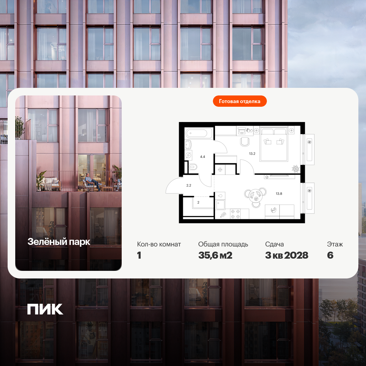 Купить 1к квартиру 36 м² в ЖК Зелёный Парк