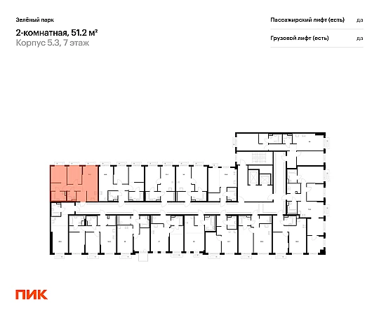 Продаётся 2-комн.квартира площадью 51.20 кв.м на 7 этаже 13 этажного дома (Корпус 5.3, секция 3) проекта ПИК Зелёный парк. Светлый просторный подъезд на уровне земли, функциональная планировка, большие окна, с отделкой.