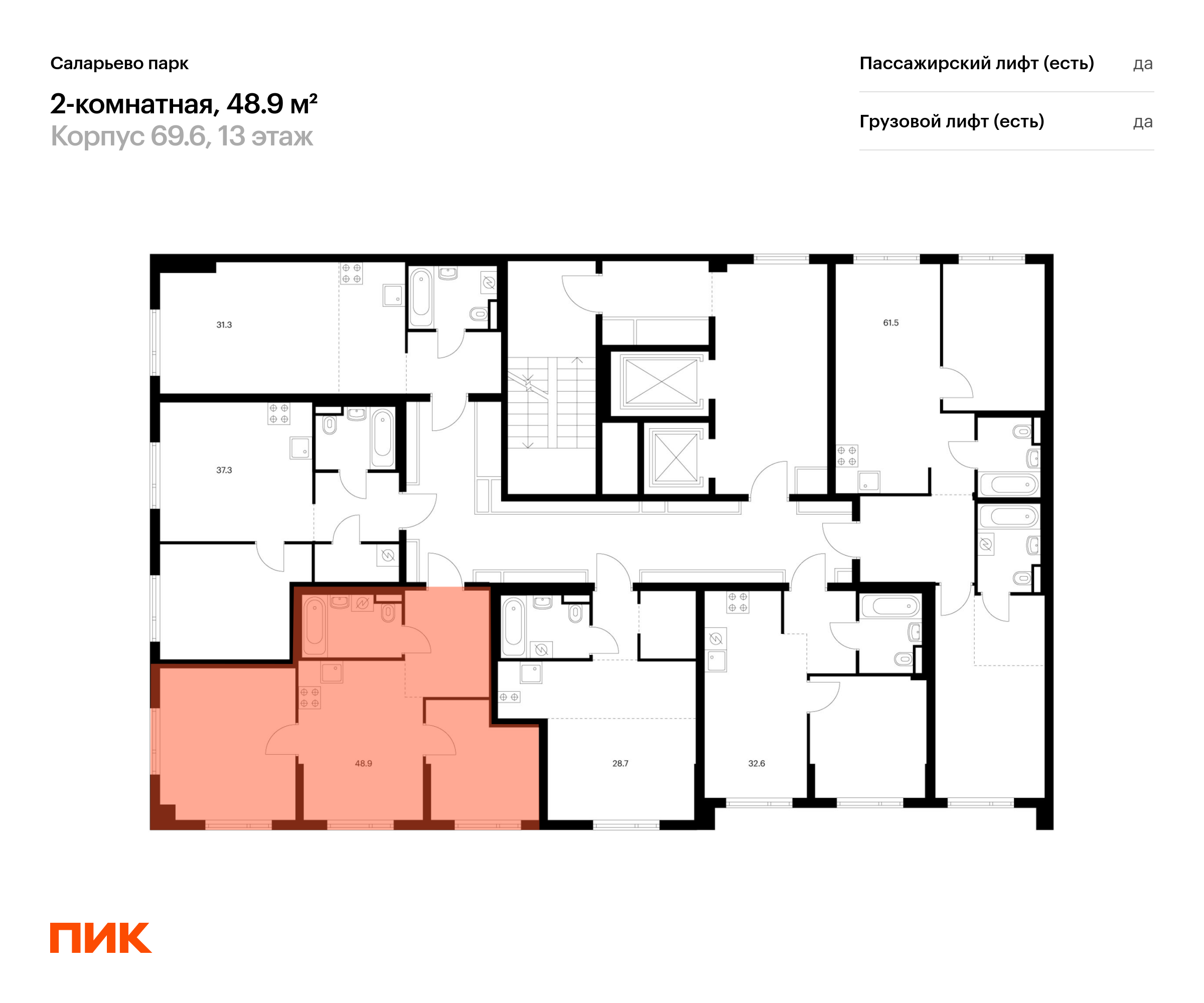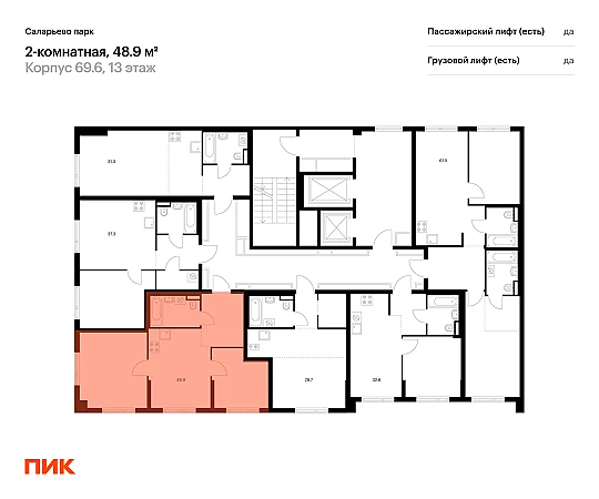Продаётся 2-комн.квартира площадью 48.90 кв.м на 13 этаже 14 этажного дома (Корпус 69.6, секция 6) проекта ПИК Саларьево парк. Светлый просторный подъезд на уровне земли, функциональная планировка, большие окна, с отделкой.