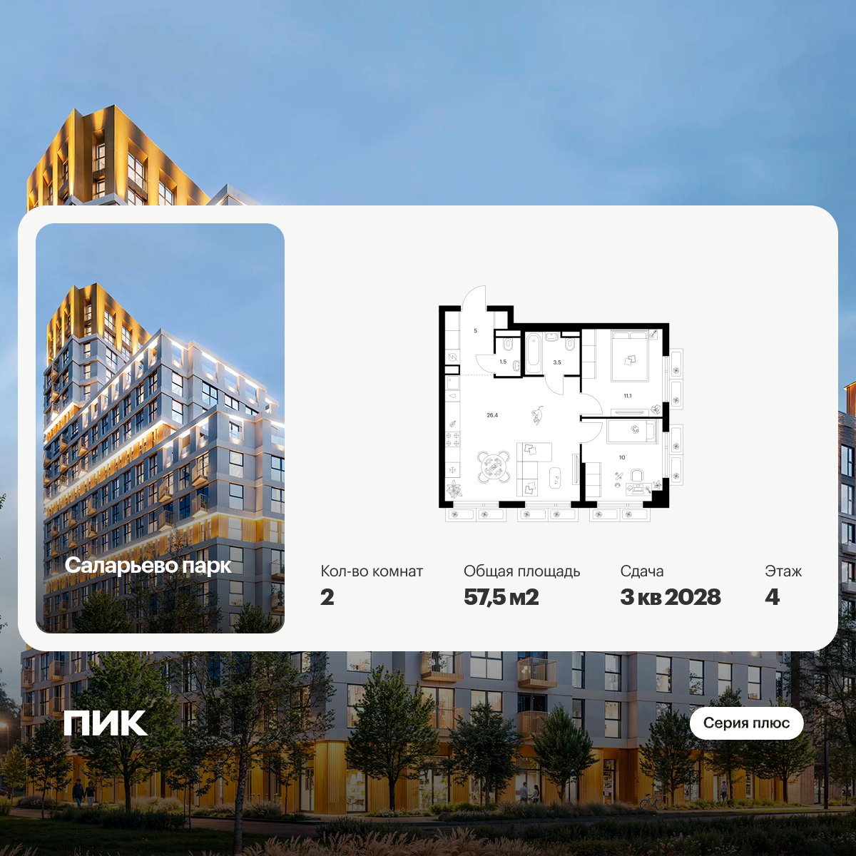 Во «2-м Иртышском» вы найдёте планировки с мастер-спальней с собственной ванной и гардеробной, компактной кухней-нишей, постирочной и сквозным санузлом. Семьям с детьми понравятся планировки со спальнями, разнесёнными по разные стороны гостиной. А ценители красивых пейзажей могут выбрать квартиру с живописным видом на парк Лосиный Остров. Артикул - 962046