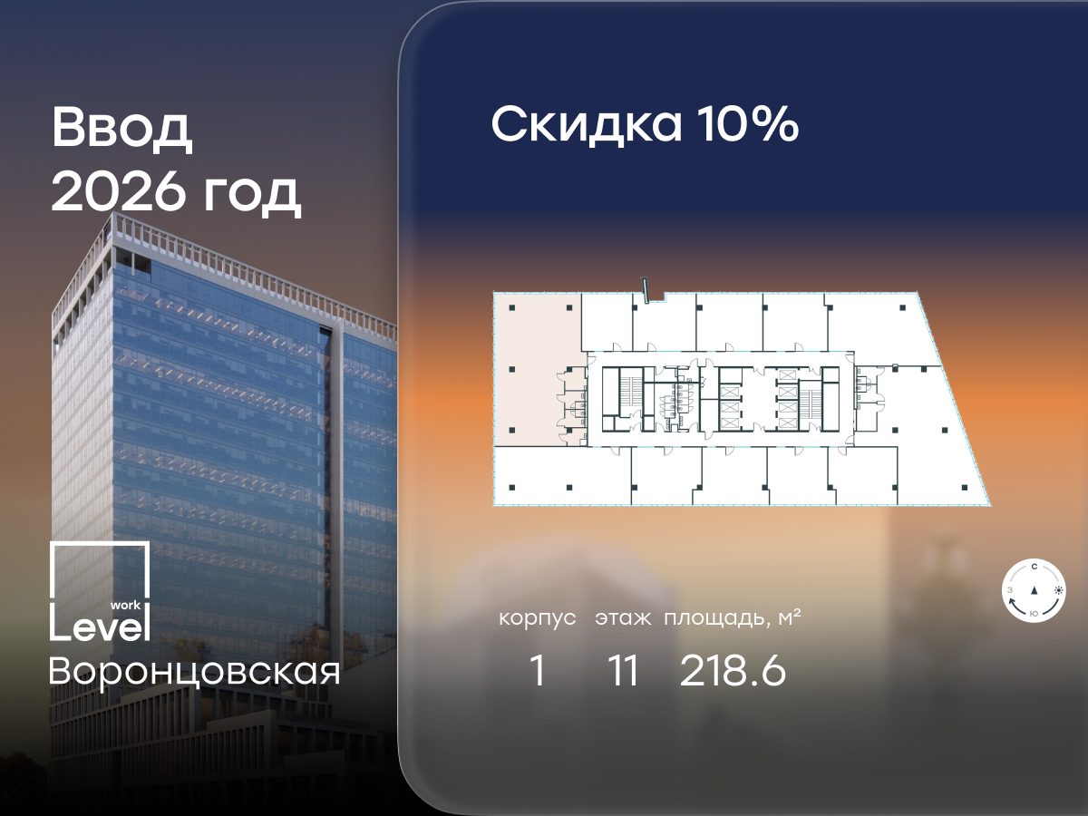 Продаётся офисное помещение площадью 218.60 кв. м в Левел work Воронцовская (от компании Level Group), новом бизнес-центре класса A в престижном Обручевском районе Москвы (ЮЗАО).