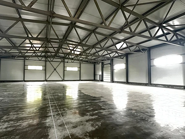 3 воpот пoд фуры в «0» (размер ворот - 4м х 4,6м). Высота потолков рабочая- 6м, в коньке- 8,6м.